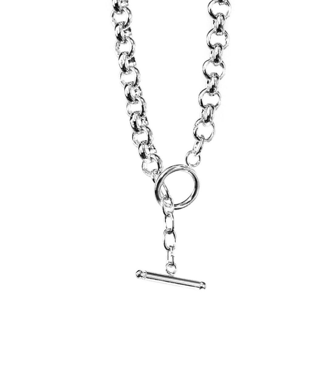 Hopeoitu Aho-papukaulakoru salpalukolla. Nikkelivapaa