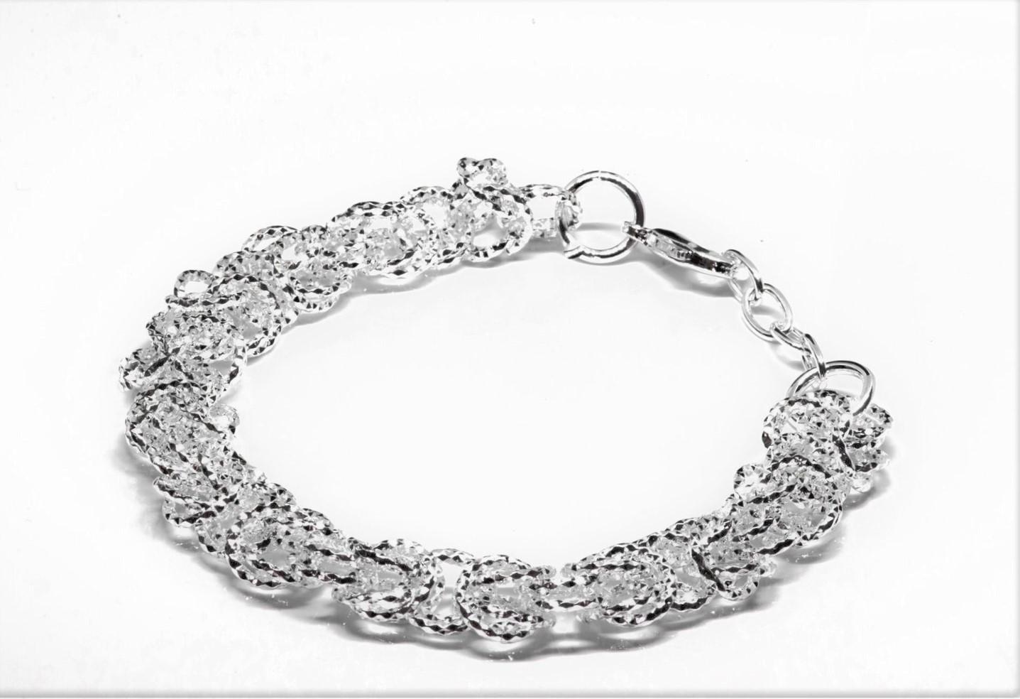 Hopeoitu timanttileikattu toivo-rannekoru. Nikkeli vapaa, papukaijalukko