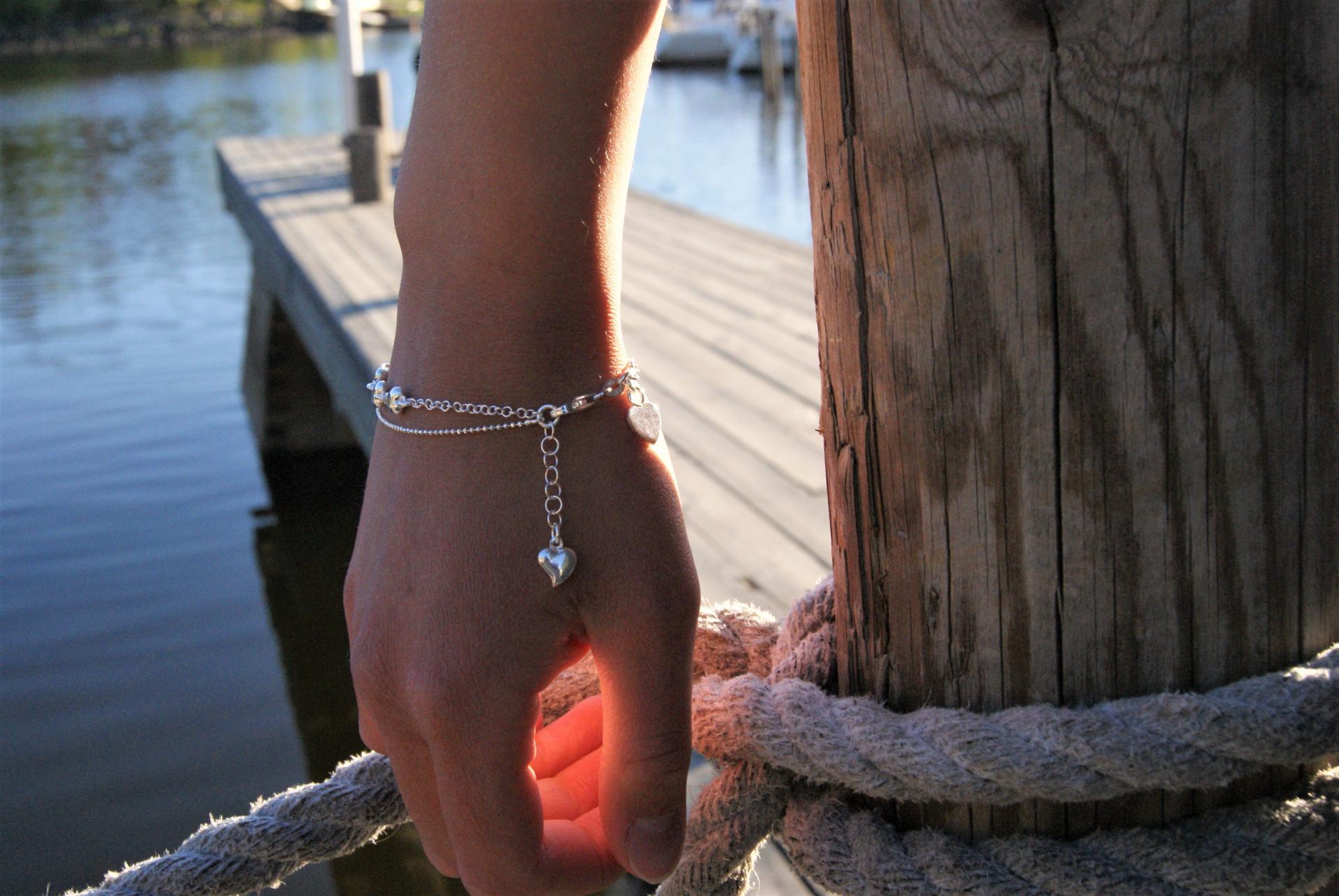 Hopeinen ranneketju sydämellä. pituus 18,5 -21 cm.