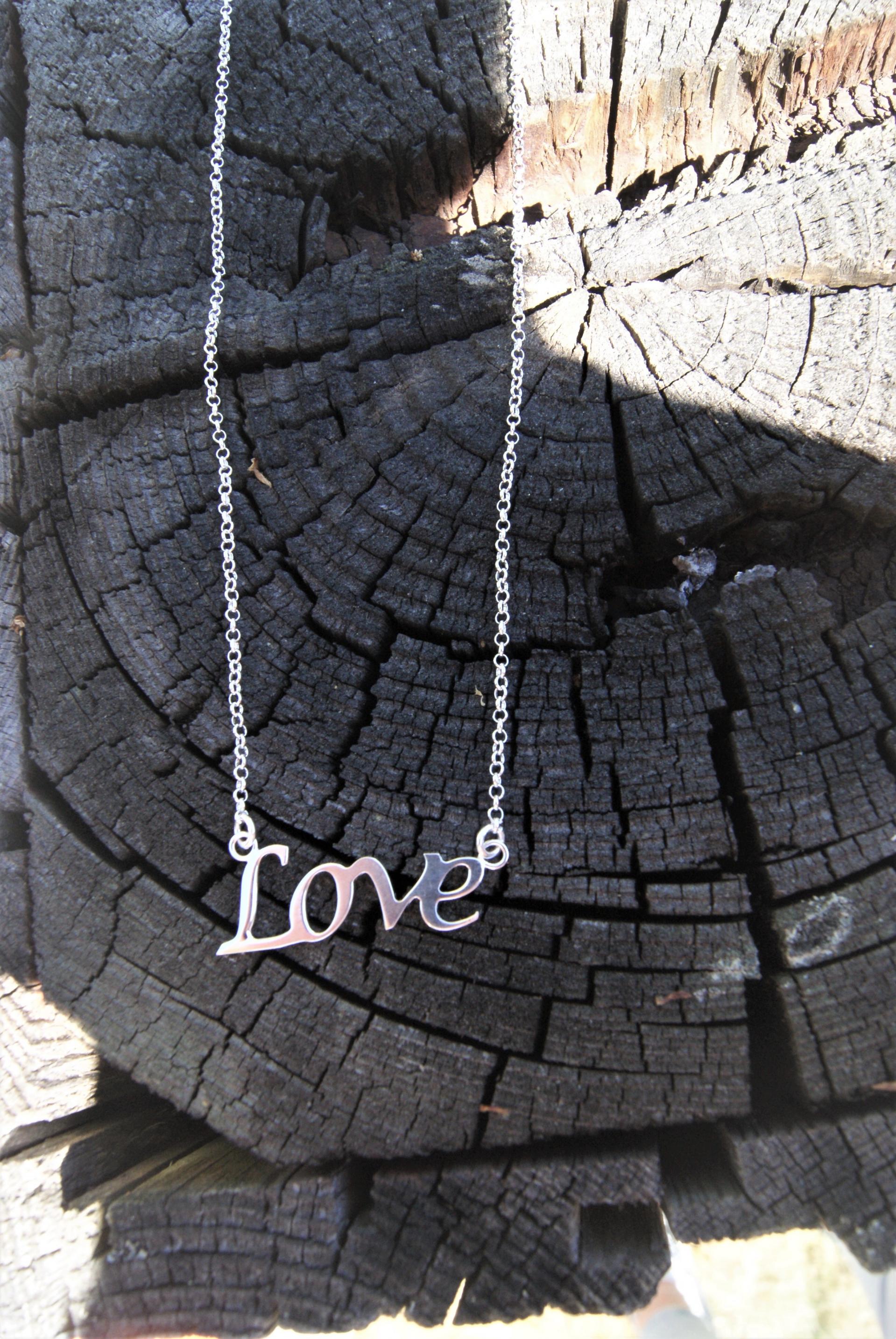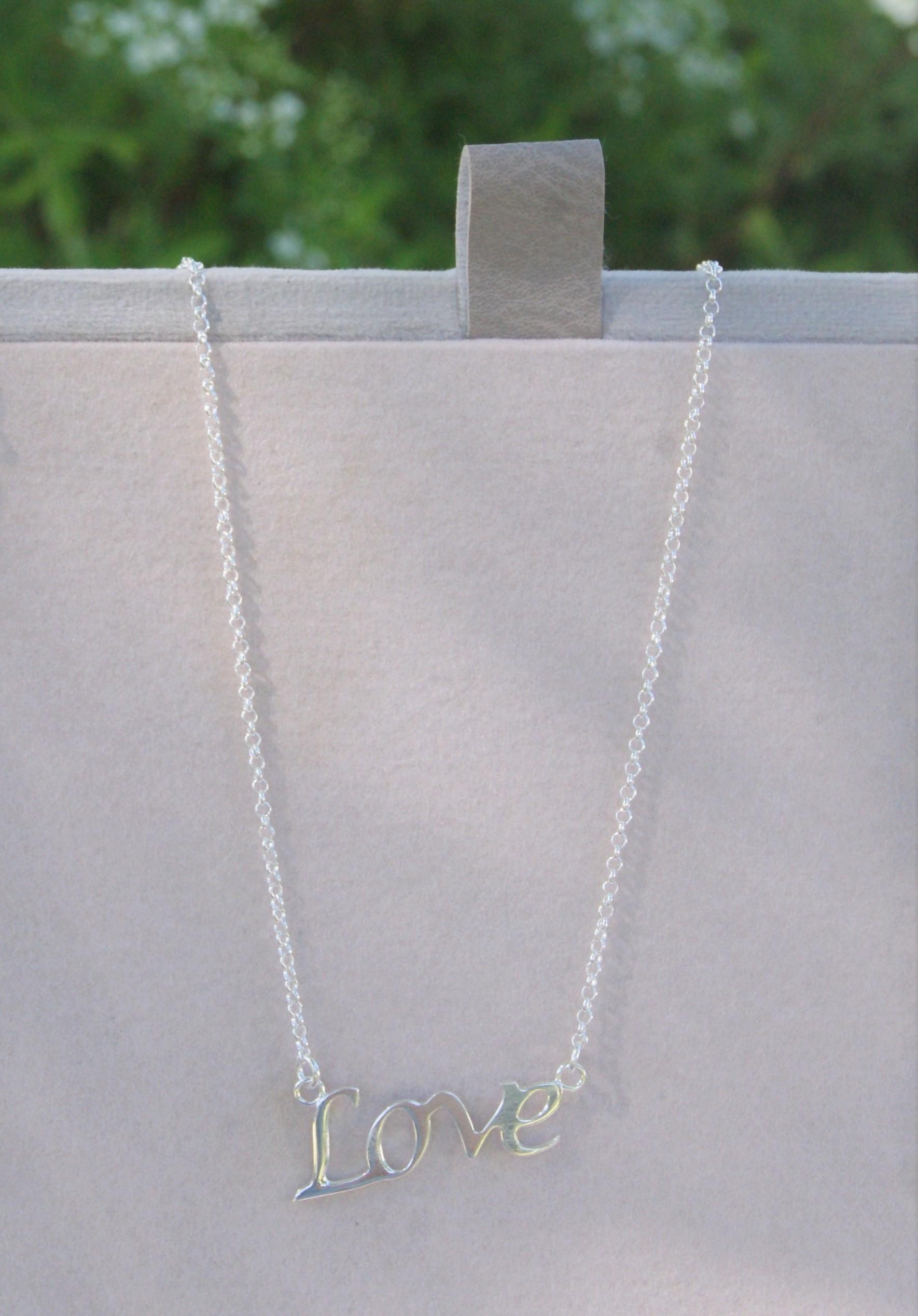 Hopeinen kaulaketju Love - tekstillä. pituus noin 45 cm.