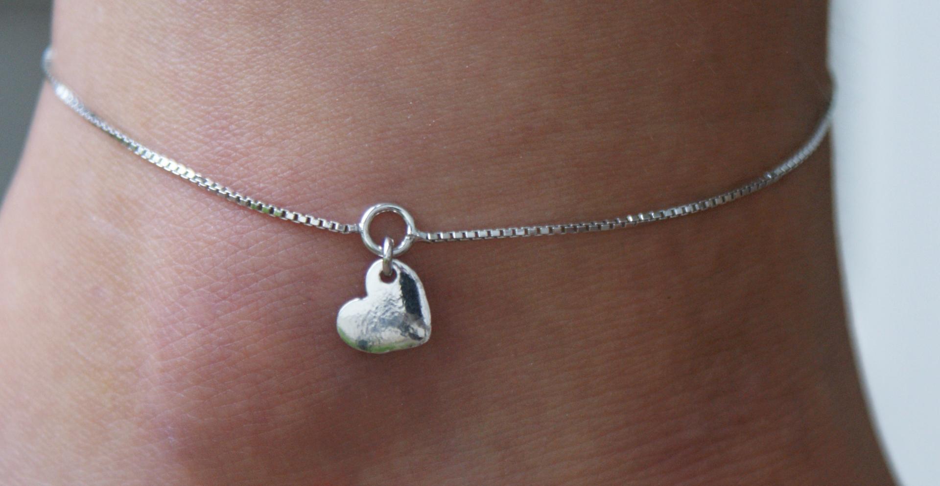Hopeinen rodinoitu nilkkaketju sydämellä. Pituus 23-25 cm.