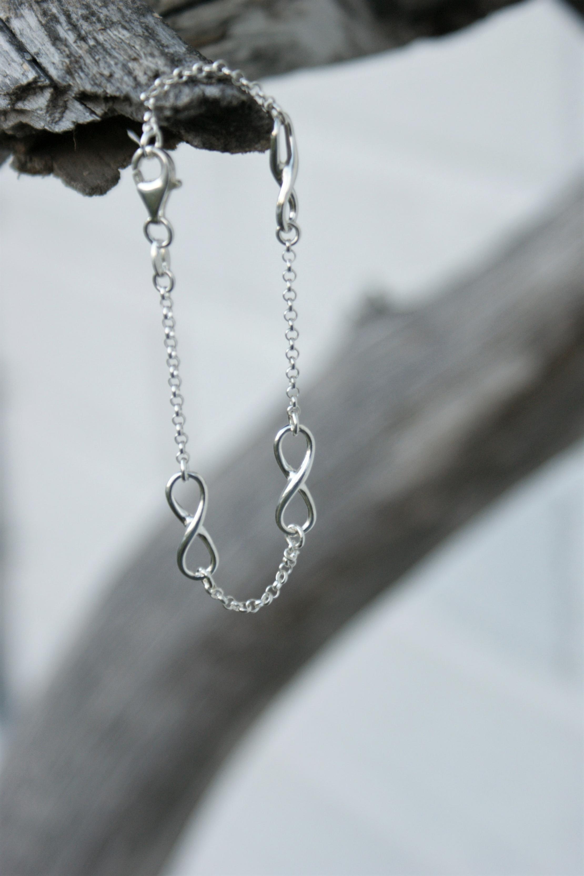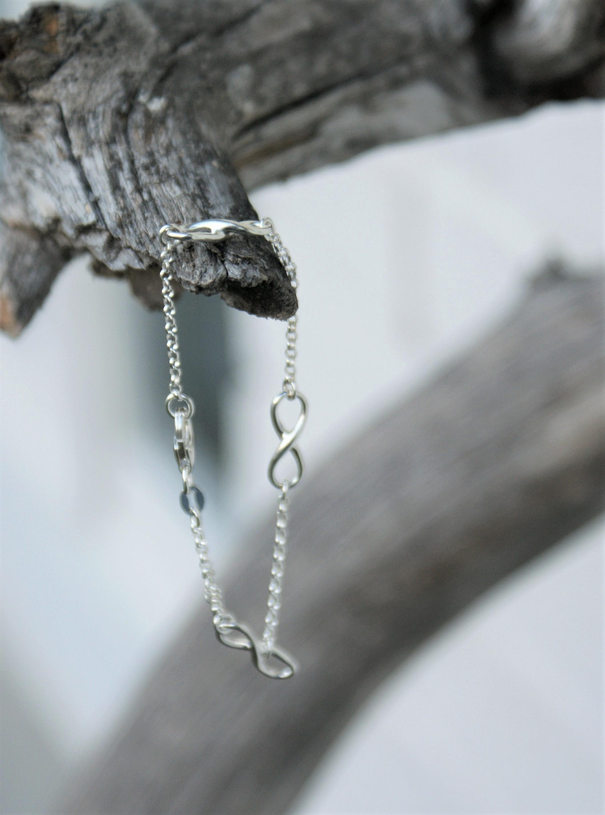 Hopeinen Infinity-ranneketju. Pituus 18.5 cm.