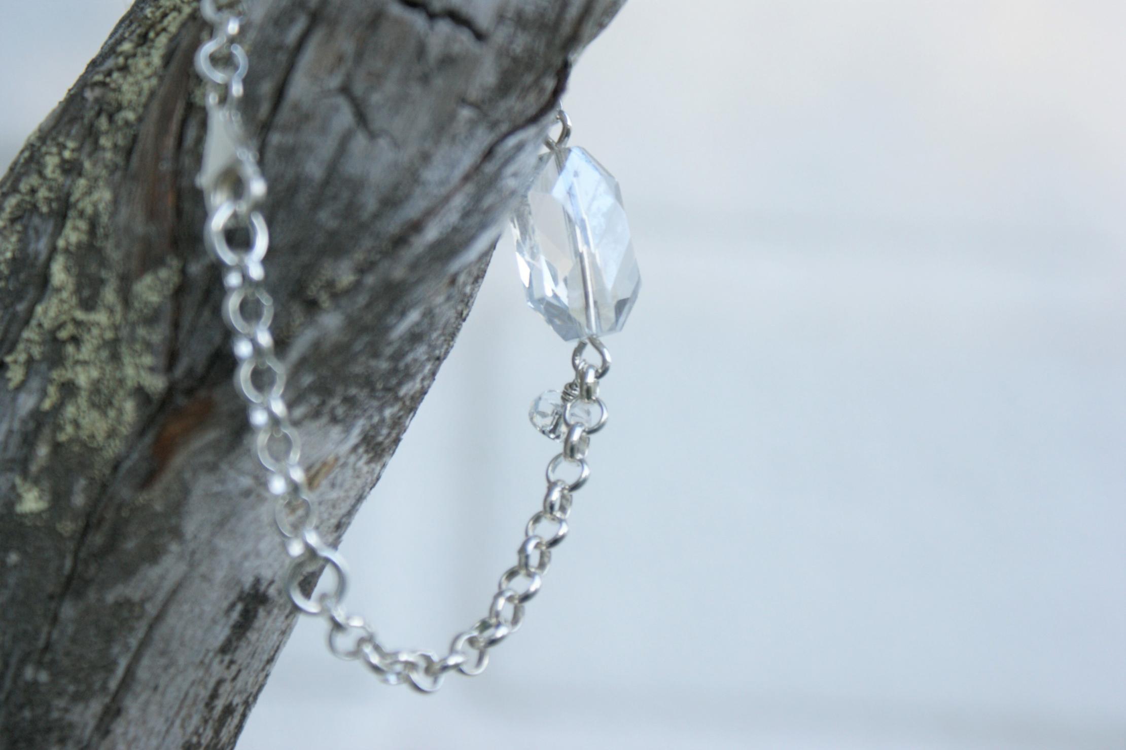 Suomalaista käsityötä, kultasepän verstas Nissin tuotantoa. Kaunis hopeinen papuketju vuorikristallilla. Pituus 16-19 cm.