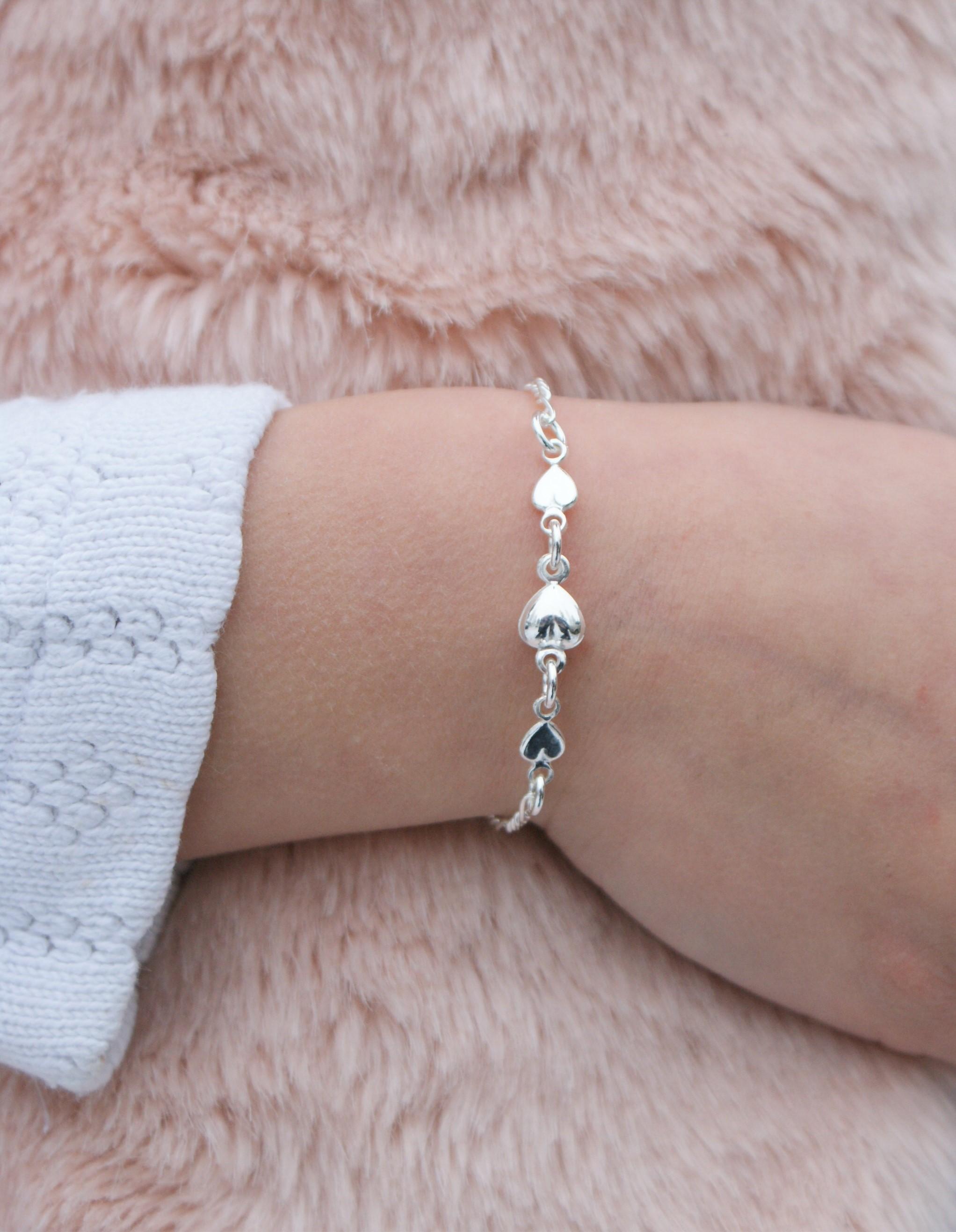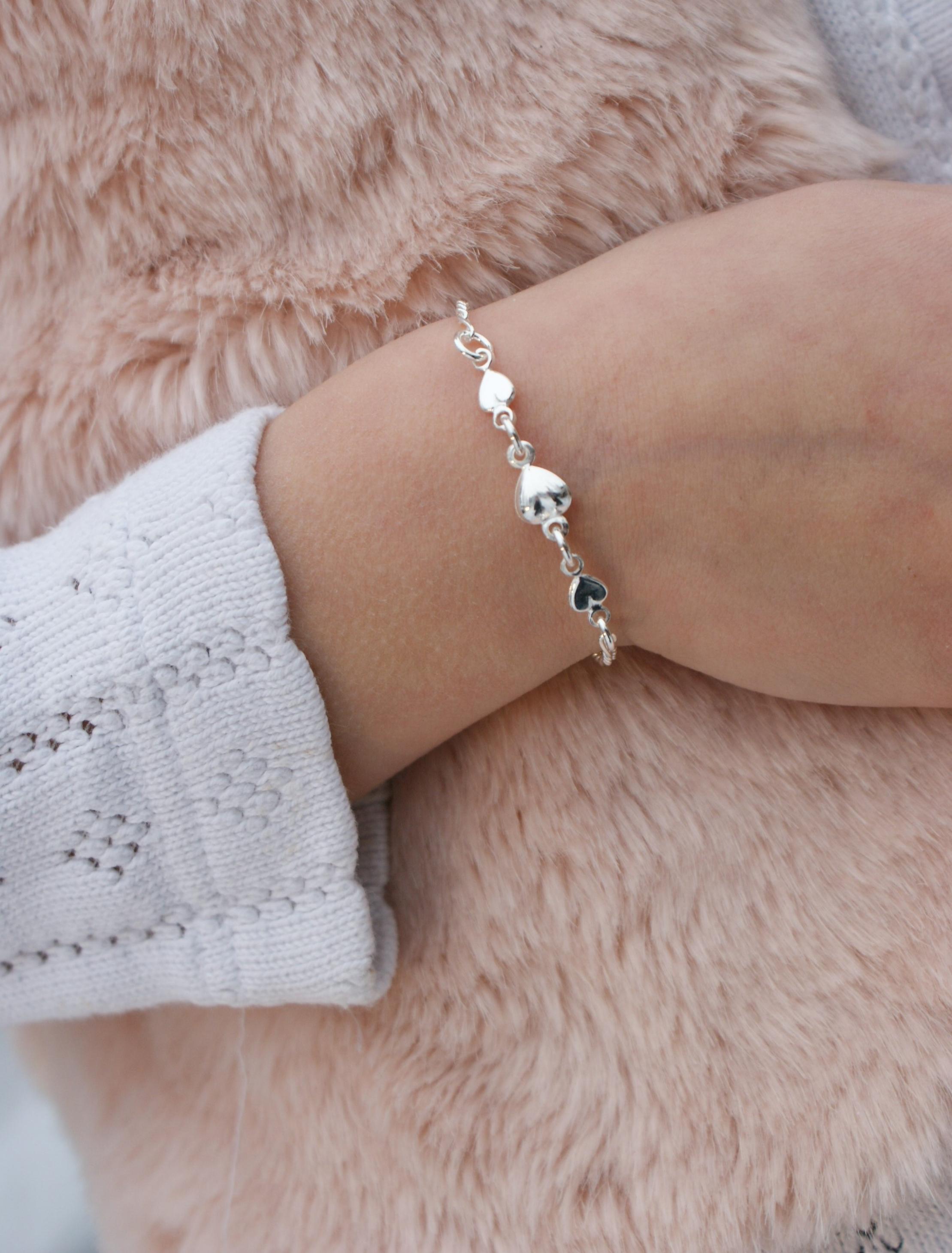 Hopeinen figaroketju sydämillä. Ketjun pituus 17 cm, saa laitettua myös välissä oleviin lenkkeihin.
