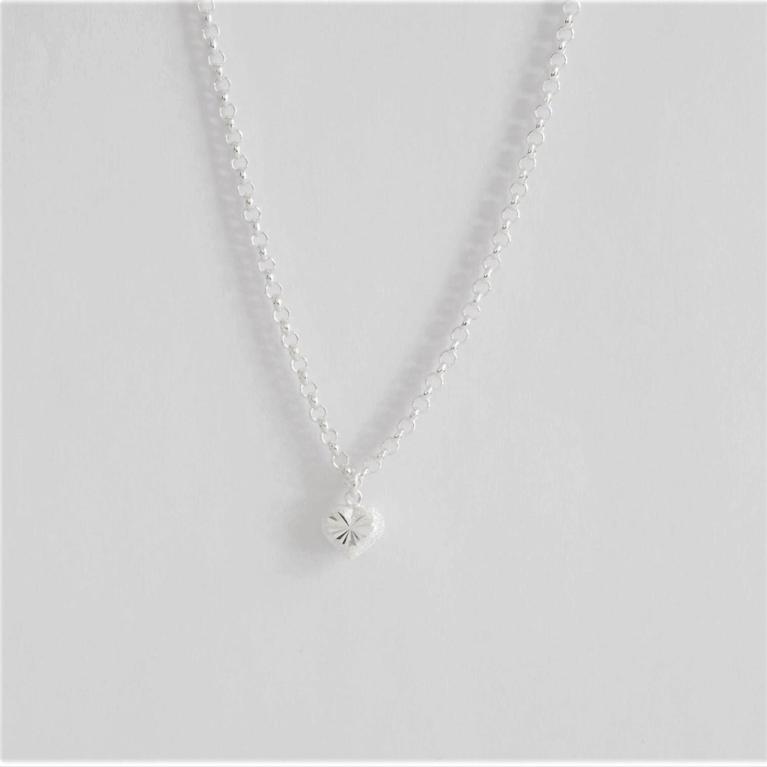 Hopeinen Papuketju sydämellä. Ketjun leveys 3mm. Pituus 45 cm.