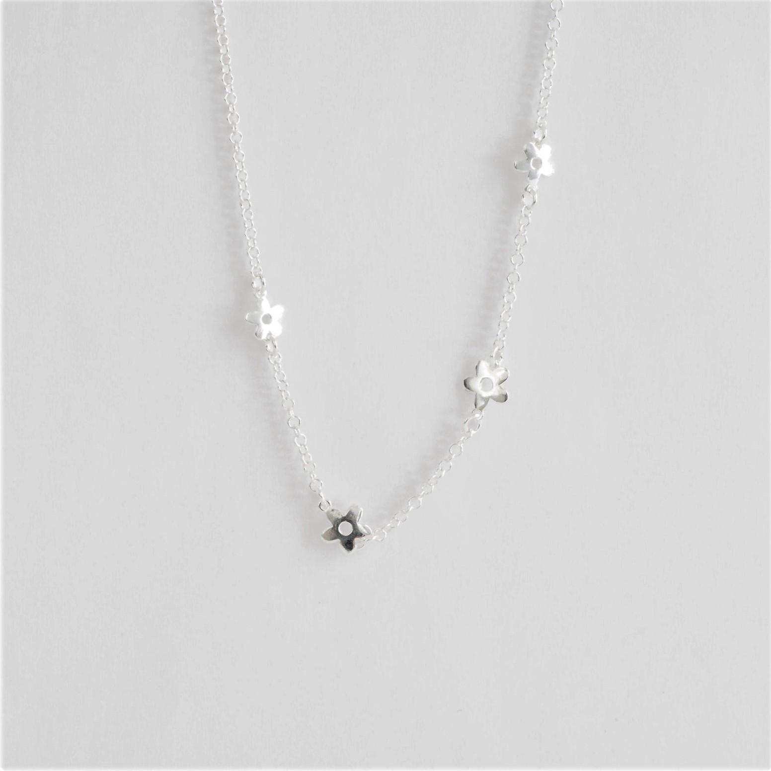 Hopeinen Papuketju neljällä kukalla. pituus 45 cm