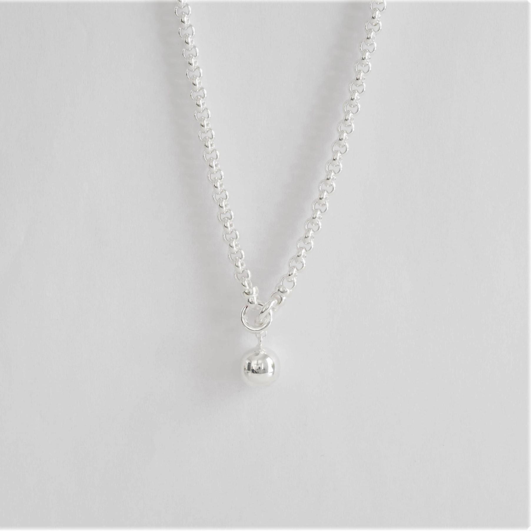 Hopeinen Papuketju palloriipuksella. Ketjun leveys 6mm, pallon halkaisia 12mm. pituus 45 cm